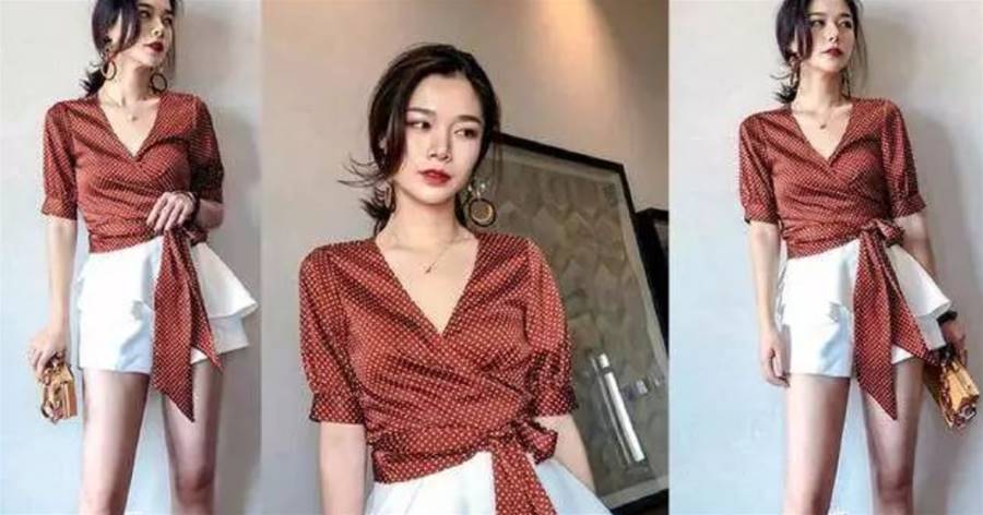 這件V領雪紡衫很特別,有復古的波點設計,還有超級夸張的胡蝶結衣擺設計,這麼有有范的雪紡衫,誰穿上它都特別美。